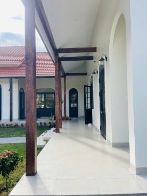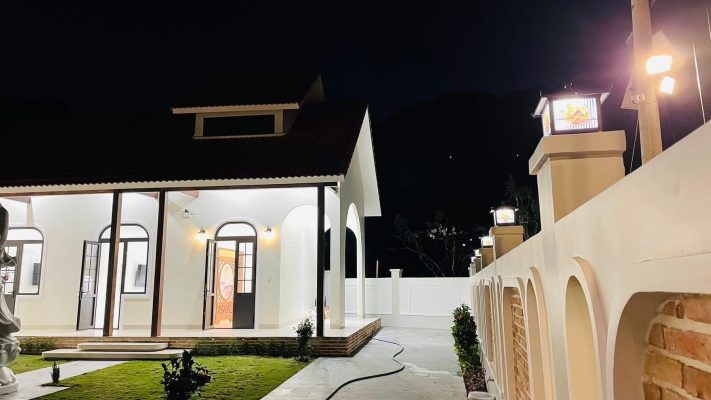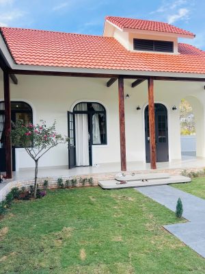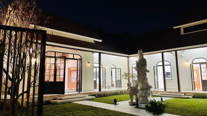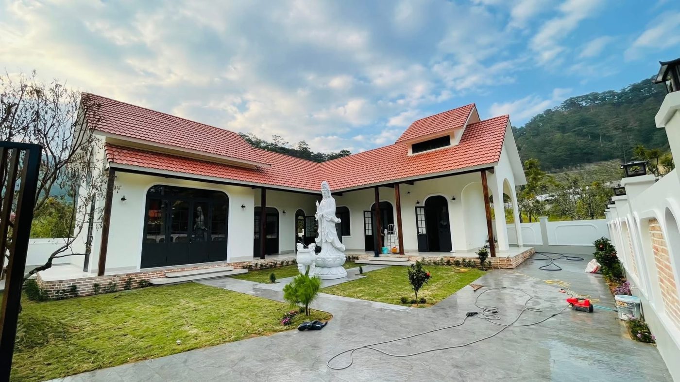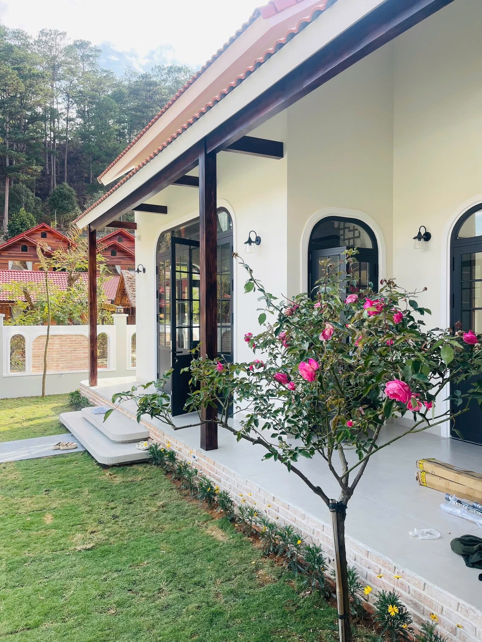 • Điểm nhấn phong cách: Giữa mảng tường trắng và mái ngói đỏ truyền thống, hệ cửa nhôm đen nổi bật lên như một nét chấm phá hiện đại, làm tăng giá trị thẩm mỹ tổng thể cho công trình.